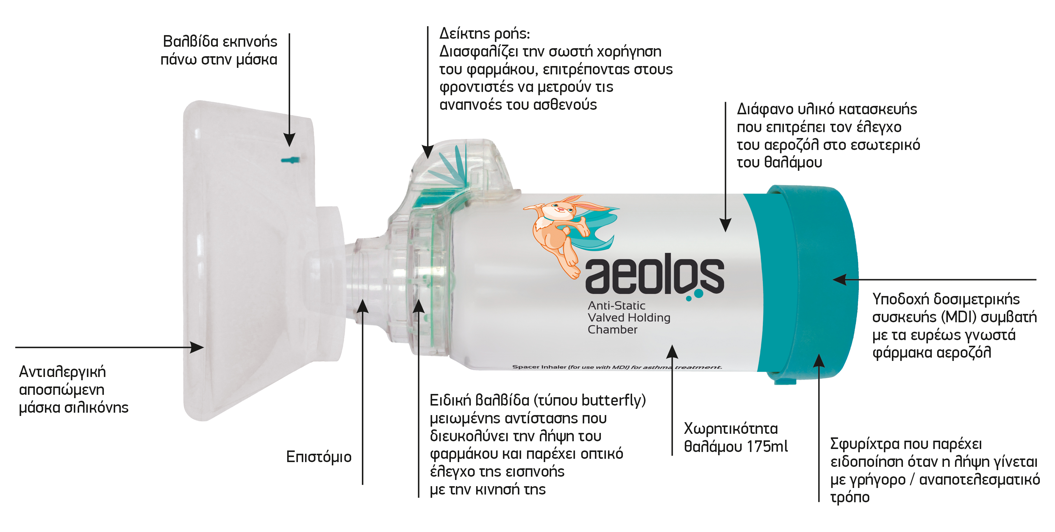 - Η μάσκα πρέπει να παραμείνει εφαρμοσμένη στο πρόσωπο του ασθενούς για 5-6 εισπνοές με την χορήγηση ενός ψεκασμού.