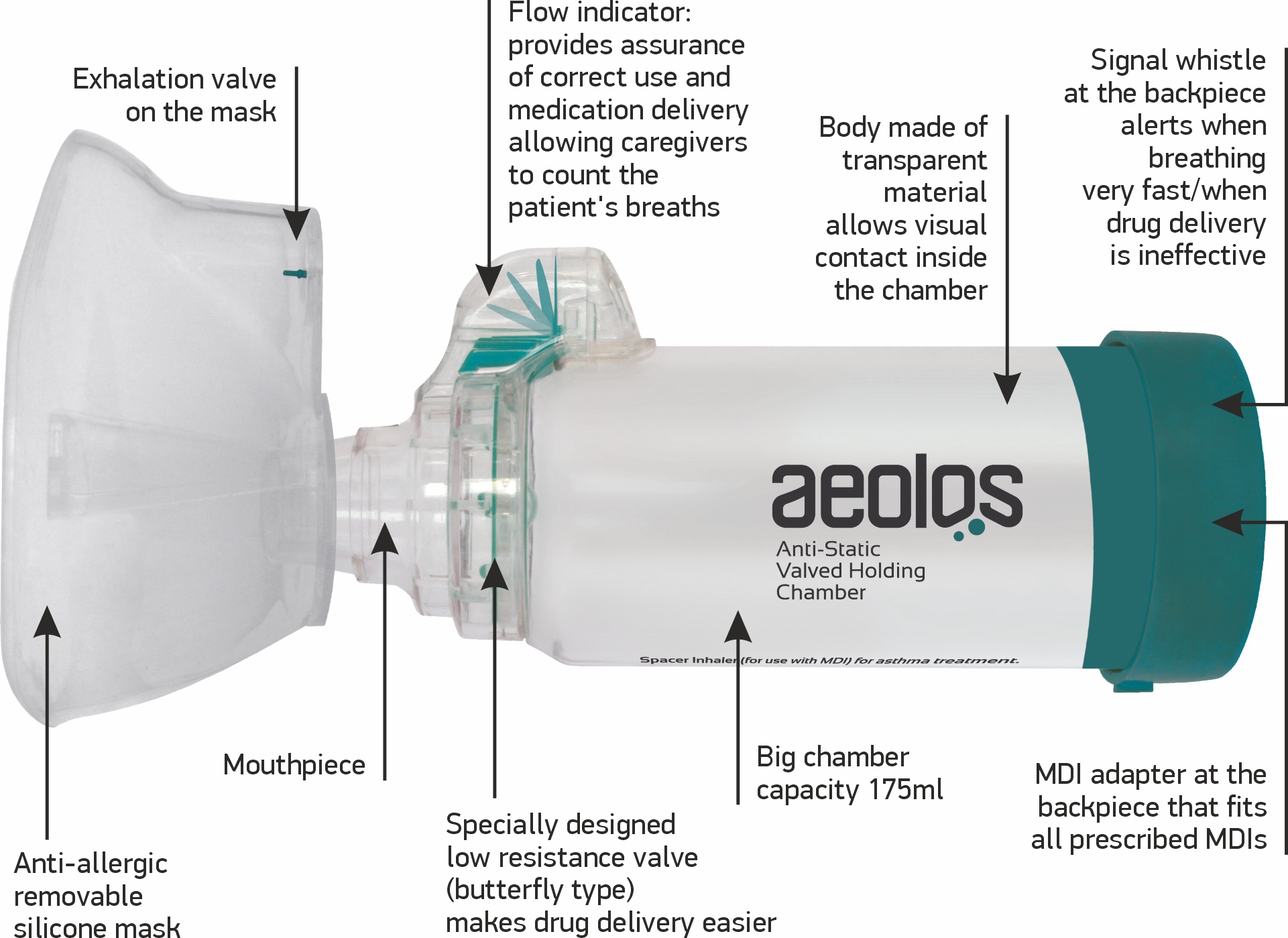- The mask must be applied over the patient's face for 5-6 breaths after providing one puff.